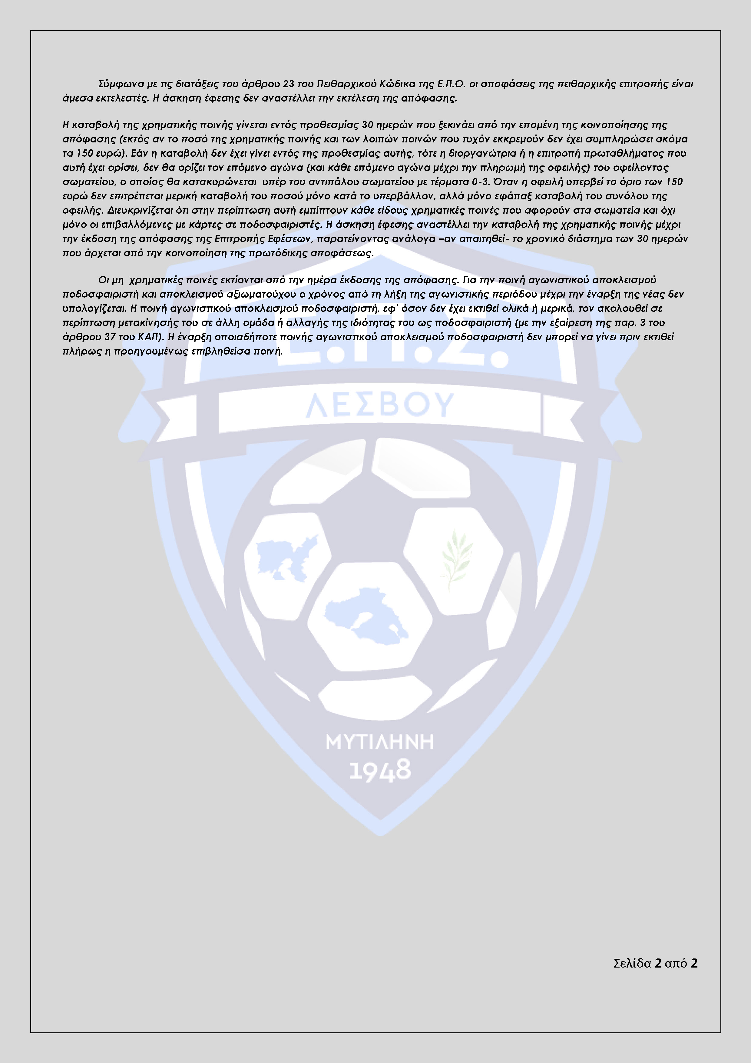 Απόφαση Πειθαρχικής Επιτροπής Ε.Π.Σ Λέσβου Αγωνιστικής Περιόδου 2025-2026 (Πρακτικό 3)