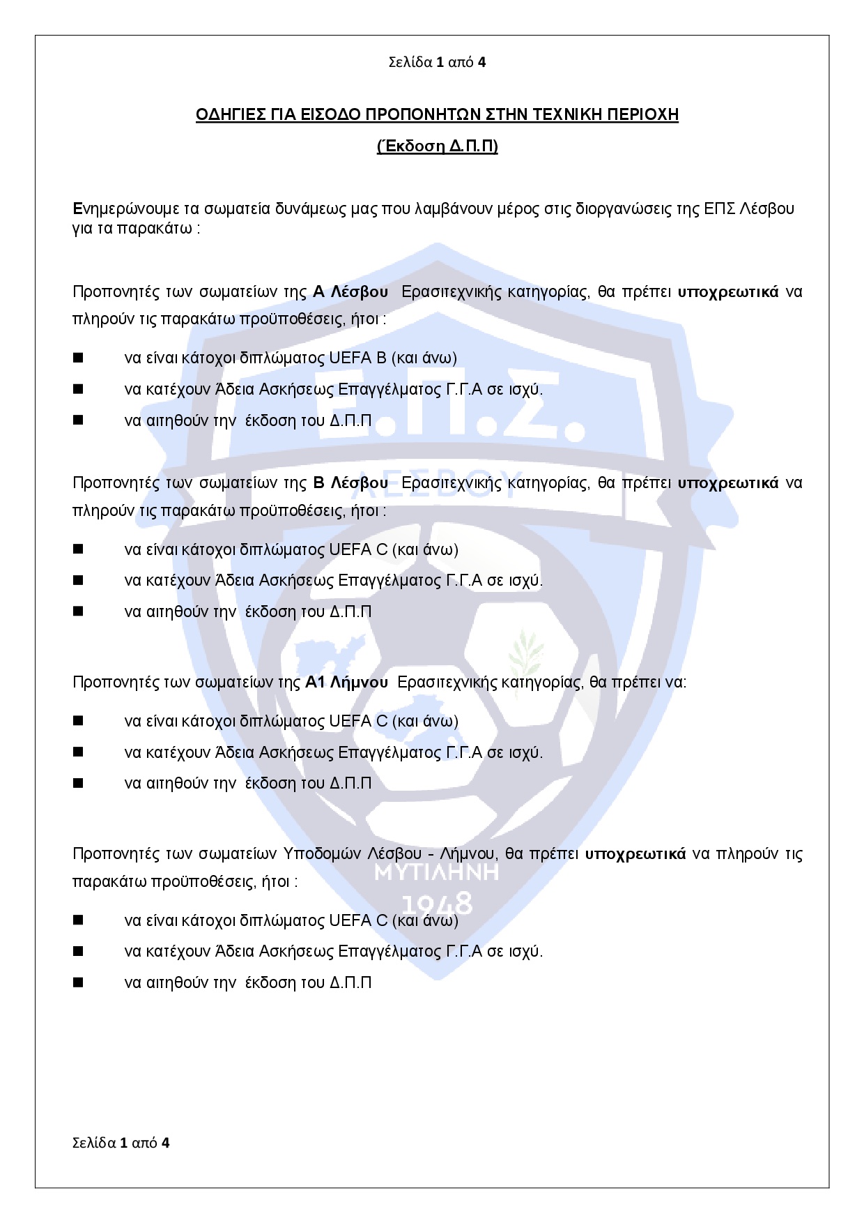 Ενημερώνουμε τα σωματεία δυνάμεως μας όπως προβούν στο αίτημα έκδοσης του Δ.Π.Π - Άδεια Εισόδου ακολουθόντας τις αναλυτικές οδηγίες. Ο τρόπος αποστολής του αιτήματος θα πρέπει να είναι όπως περιγράφεται.