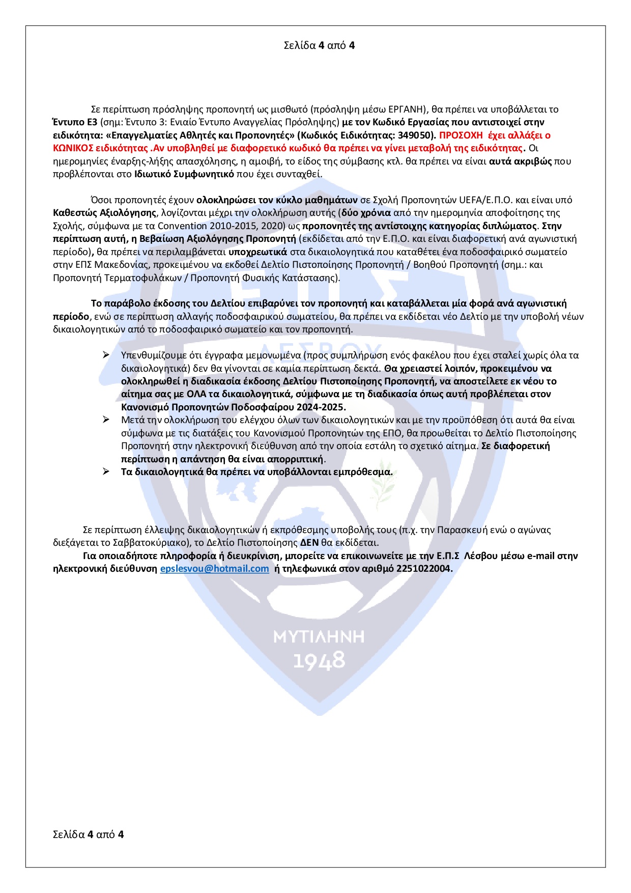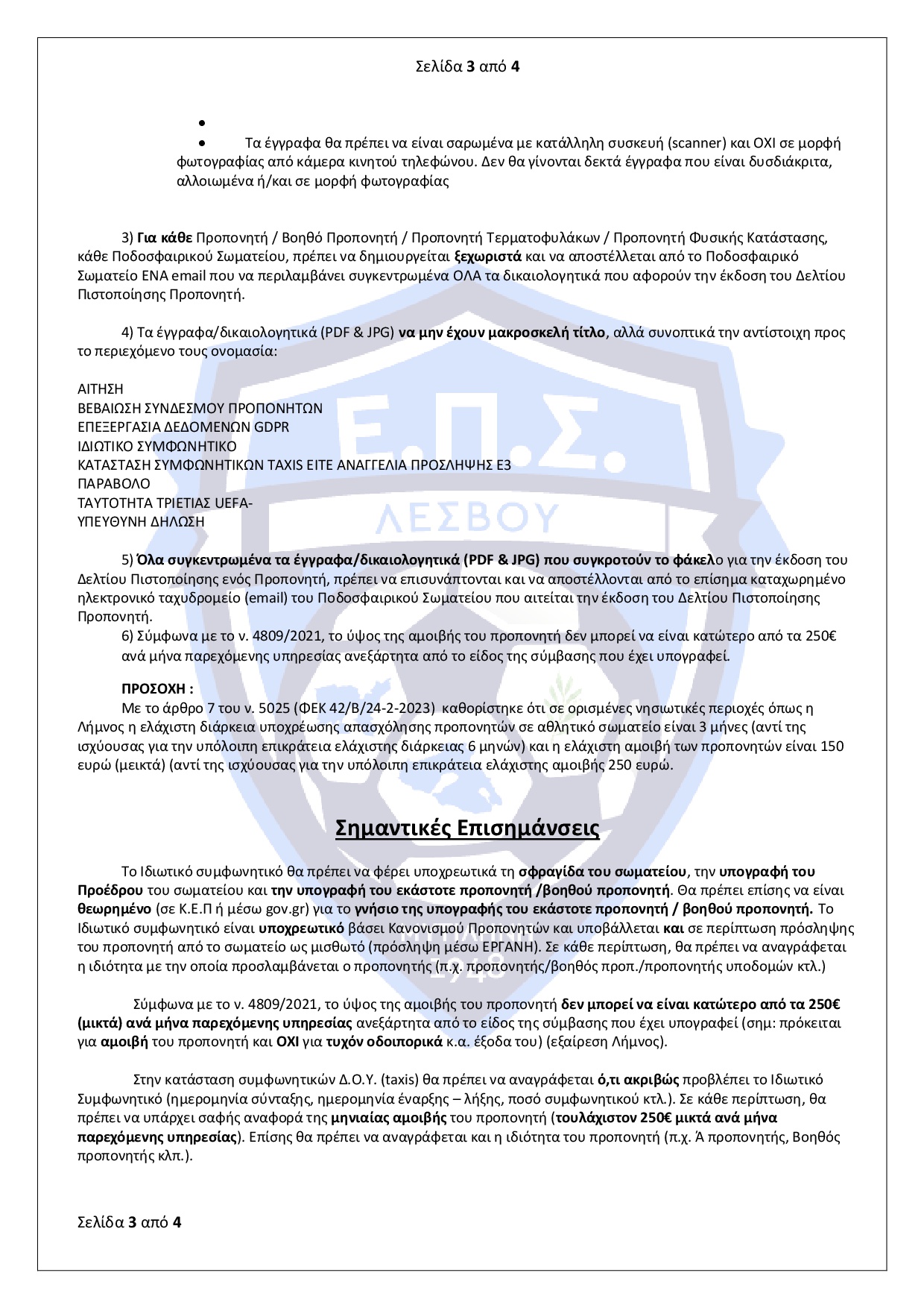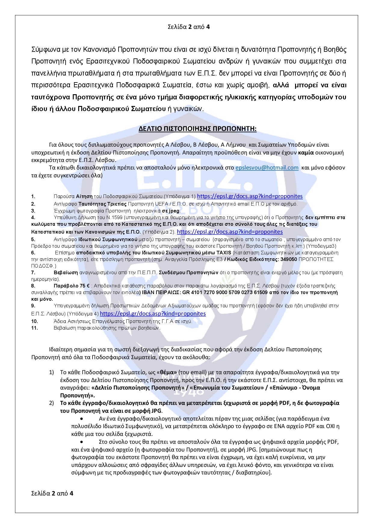 Έκδοσης Δελτίου Πιστοποίησης Προπονητή απο Σωματείο