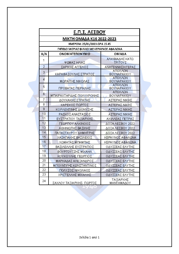ΚΛΗΣΗ ΠΟΔΟΣΦΑΙΡΙΣΤΩΝ 2007-2008 ΜΙΚΤΗΣ Ε.Π.Σ. ΛΕΣΒΟΥ